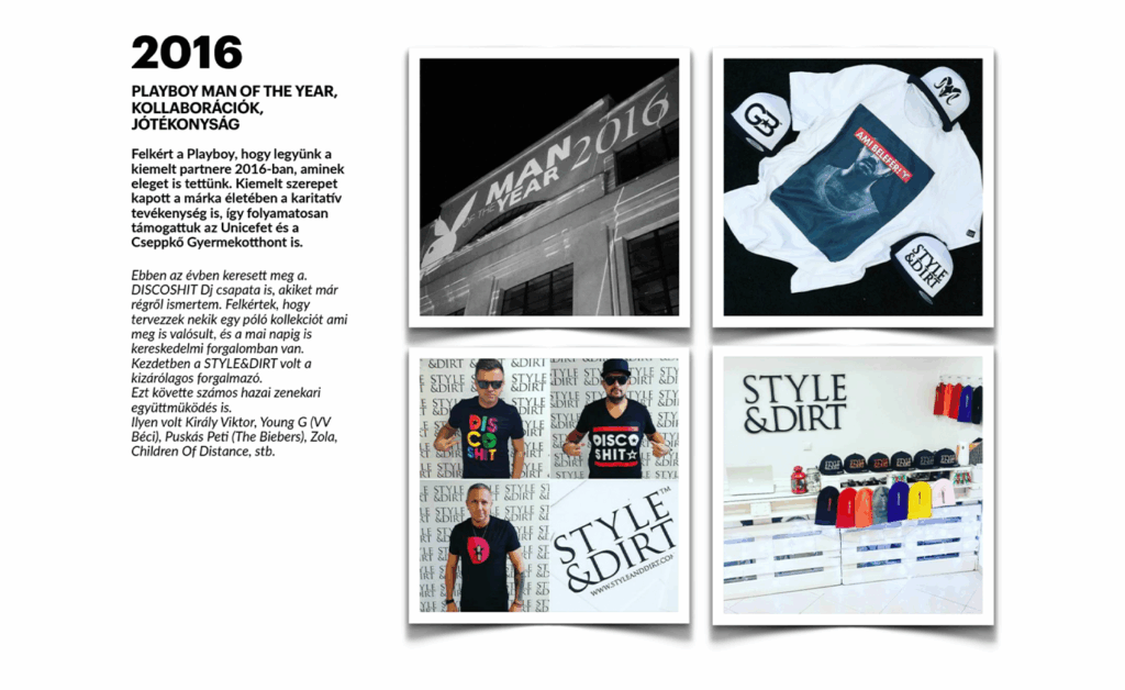 Ebben az évben jött a Discoshit DJ csapata – akiket már régről ismertem –, és megkértek, hogy tervezzek nekik egy pólókollekciót. Megcsináltuk. A kollekció olyan jól sikerült, hogy a mai napig kapható, és kezdetben kizárólag a STYLE&DIRT forgalmazta.