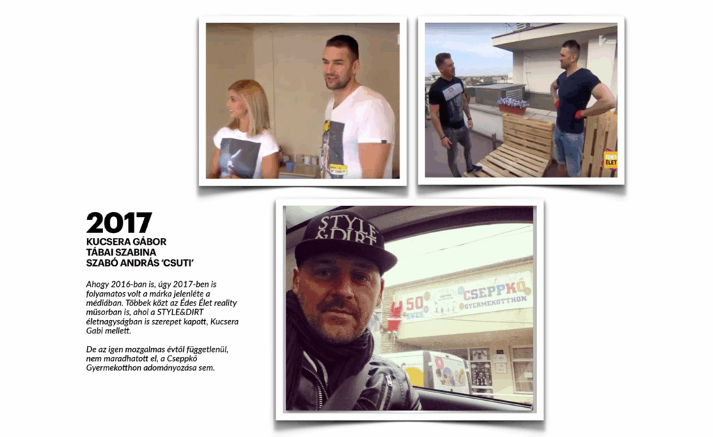 2017-ben a STYLE&DIRT továbbra is ott volt a képernyőkön. Az Édes Élet reality műsorban például életnagyságban jelent meg a márka – ott voltunk Kucsera Gábor, Tábi Szabina és Szabó András „Csuti” mellett.