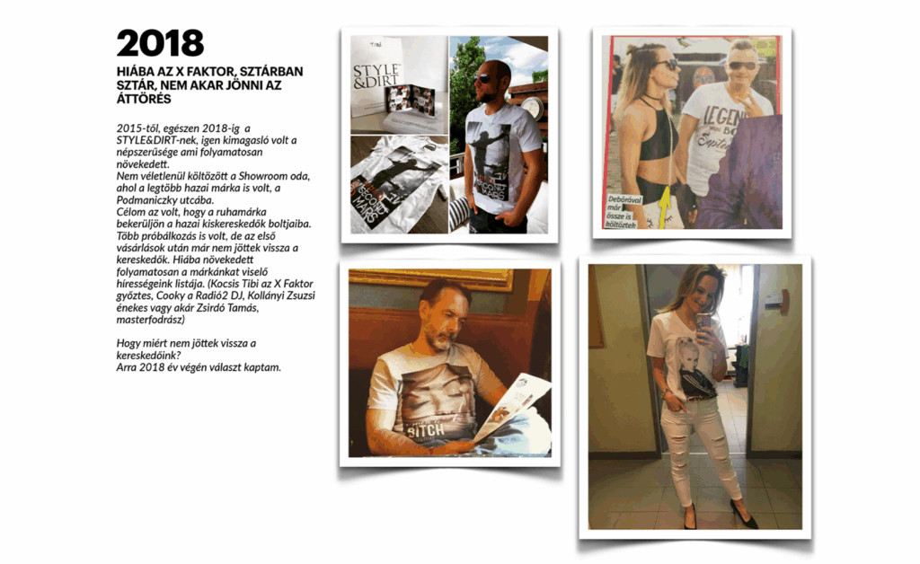 2015 és 2018 között a STYLE&DIRT folyamatosan egyre népszerűbb lett. Egyre több híresség viselte a cuccainkat: Kocsis Tibi, Cooky, Kollányi Zsuzsi, Zsirdó Tamás – és még sokan mások.