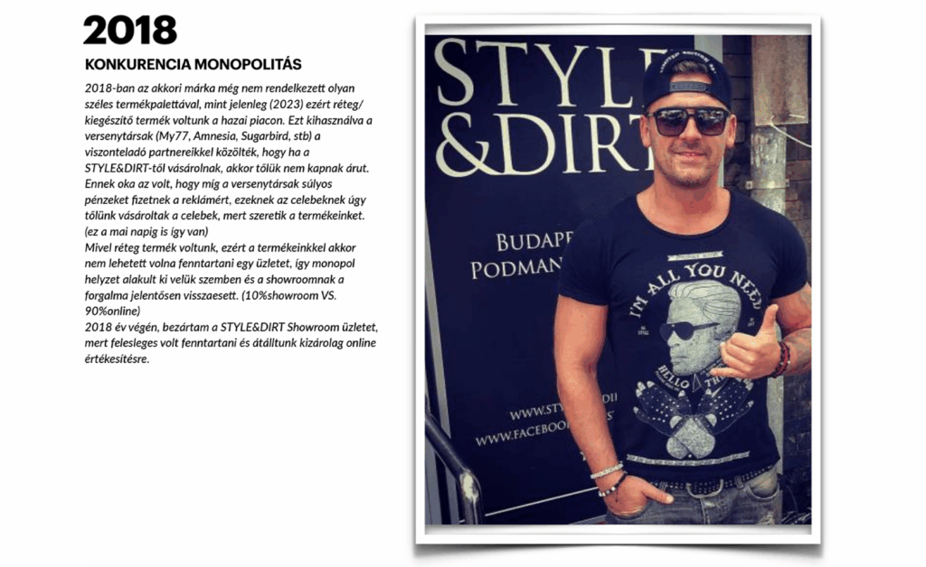 Akkoriban a STYLE&DIRT még rétegtermék volt, nem volt akkora palettánk, mint ma. Ezt kihasználva a konkurensek (pl. My77, Amnesia) közölték a partnereikkel: „Ha tőlük vásároltok, tőlünk nem kaptok árut.”